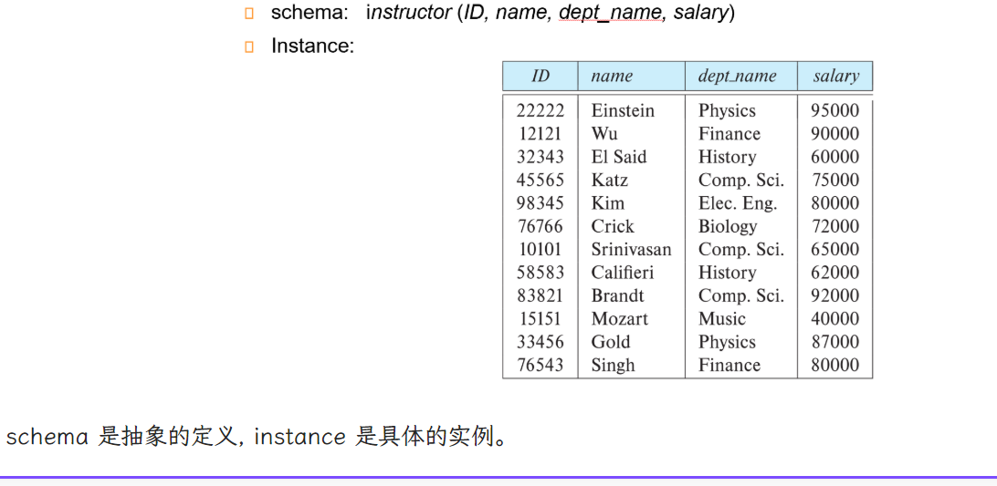 - Database instance -- is a snapshot of the data in the database at a given instant in time.数据库实例:某个时间点数据库的快照